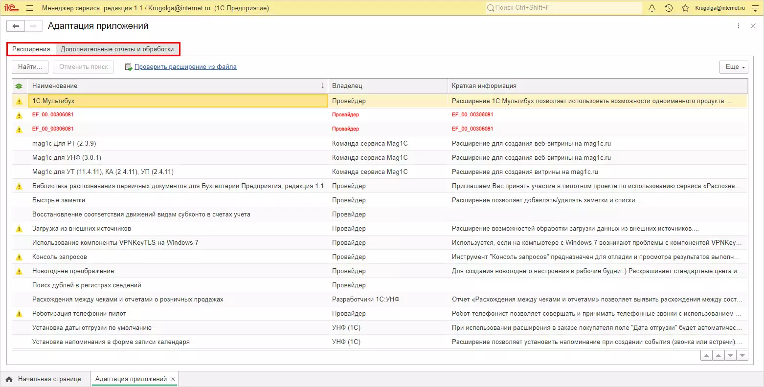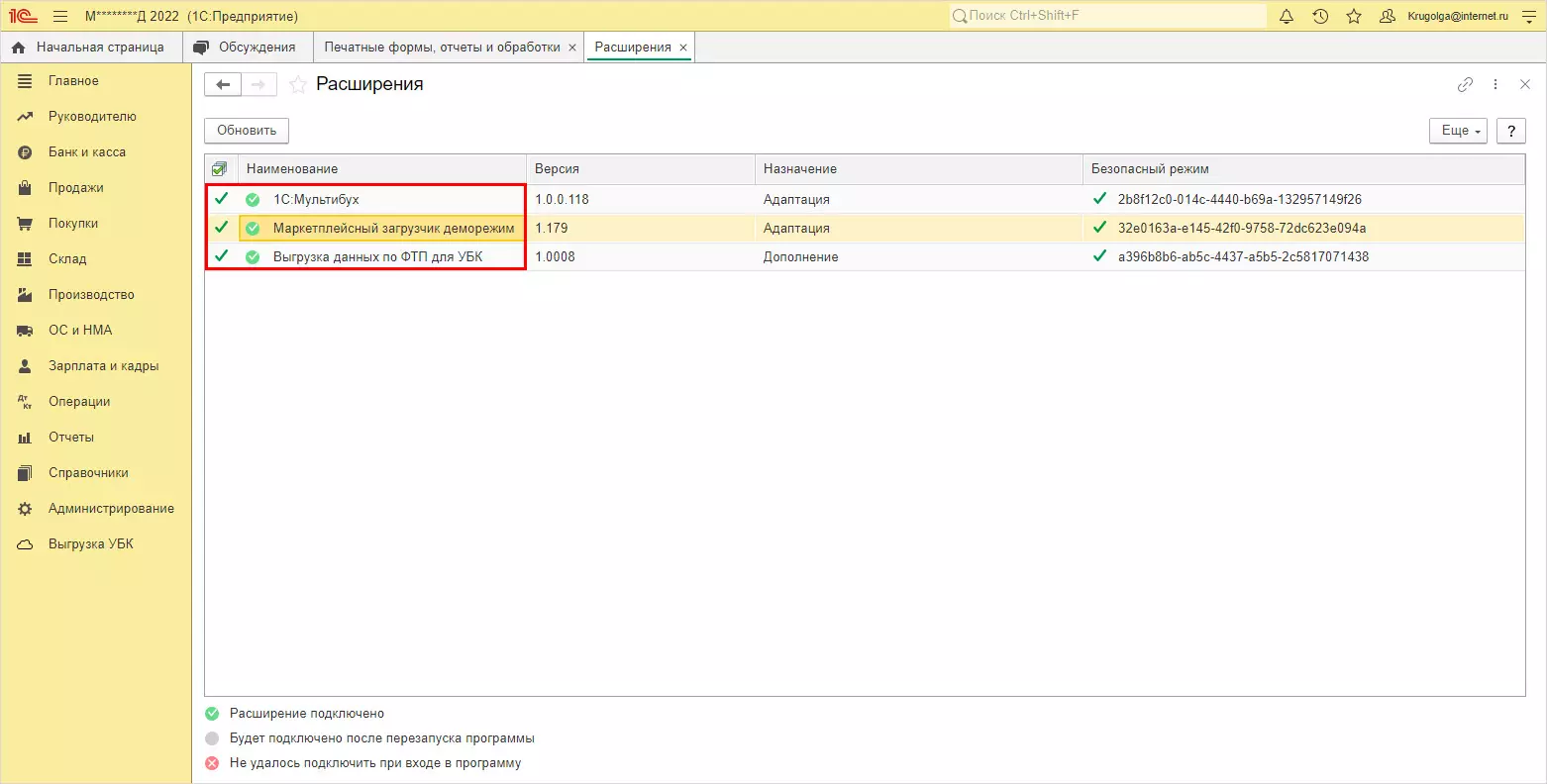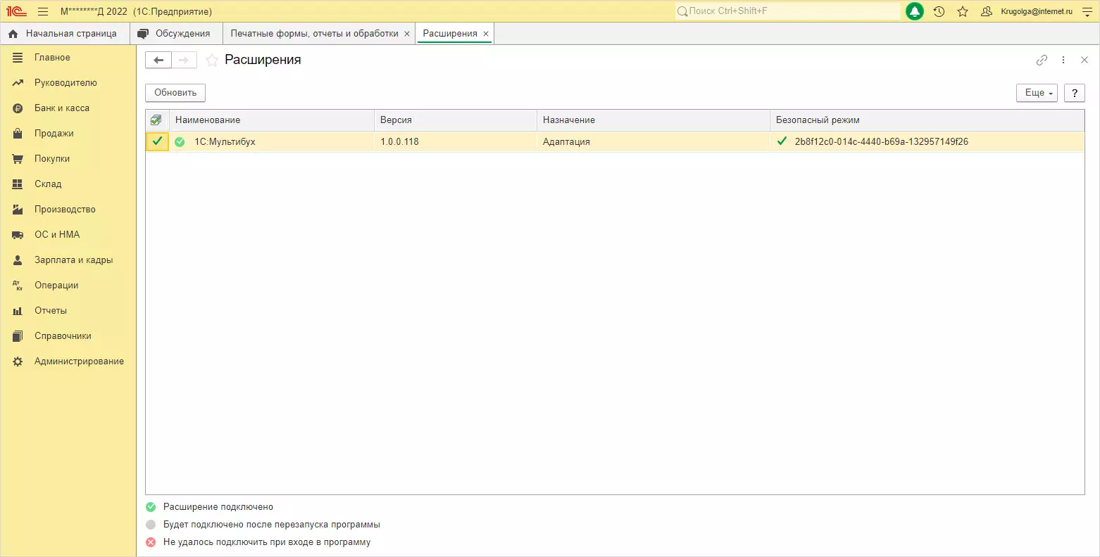 Как увидеть, какие расширения установлены в 1С:Фреш