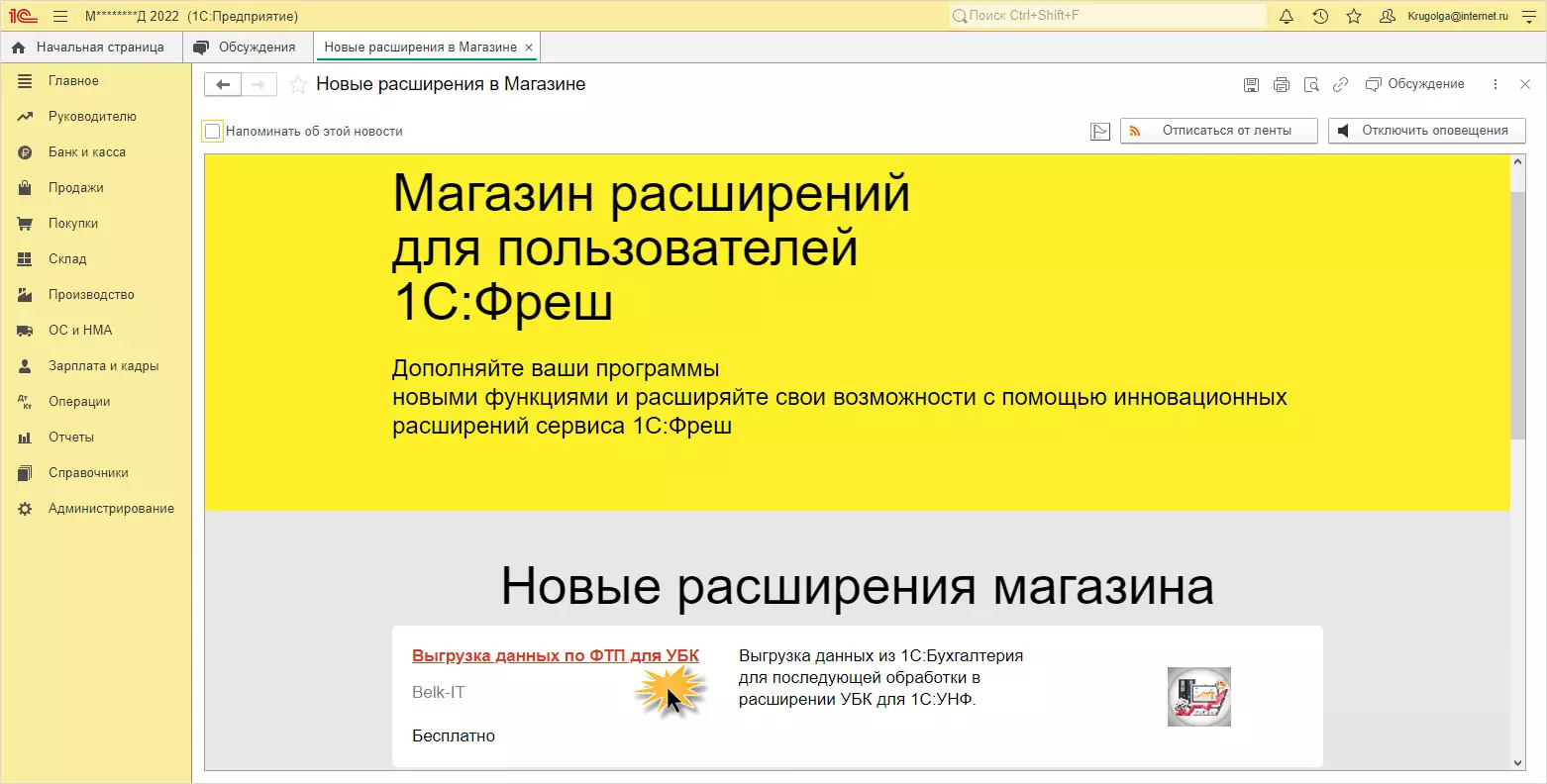 Магазин расширений 1С Фреш