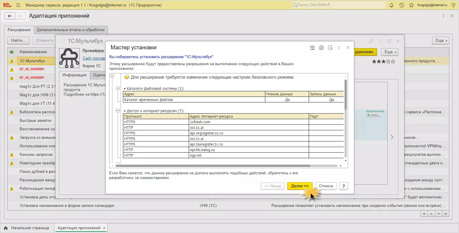 Облачный 1С:ERP через интернет для цифровизации бизнеса. Подключим бесплатный доступ на 6 мес.Шаг 7. Нажмите гиперссылку в окне с расширениями или просто обновите страницу браузера.