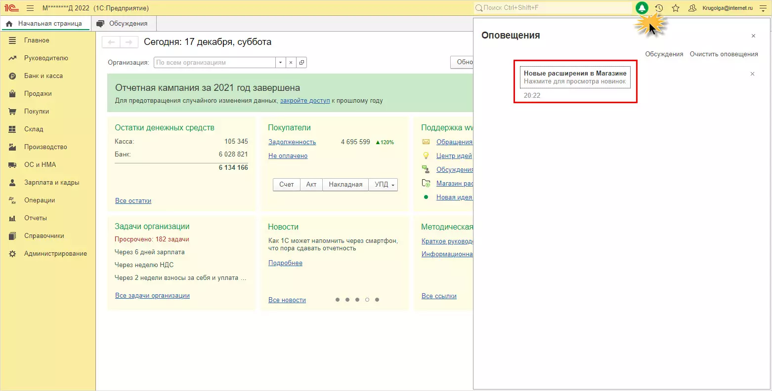 Как часто вы заглядываете в колокольчик уведомлений? Помимо прочей информации в нем появляются оповещения о новых разработках, добавленных в «Магазин». И один из вариантов установки расширения – это перейти по уведомлению в колокольчике.
