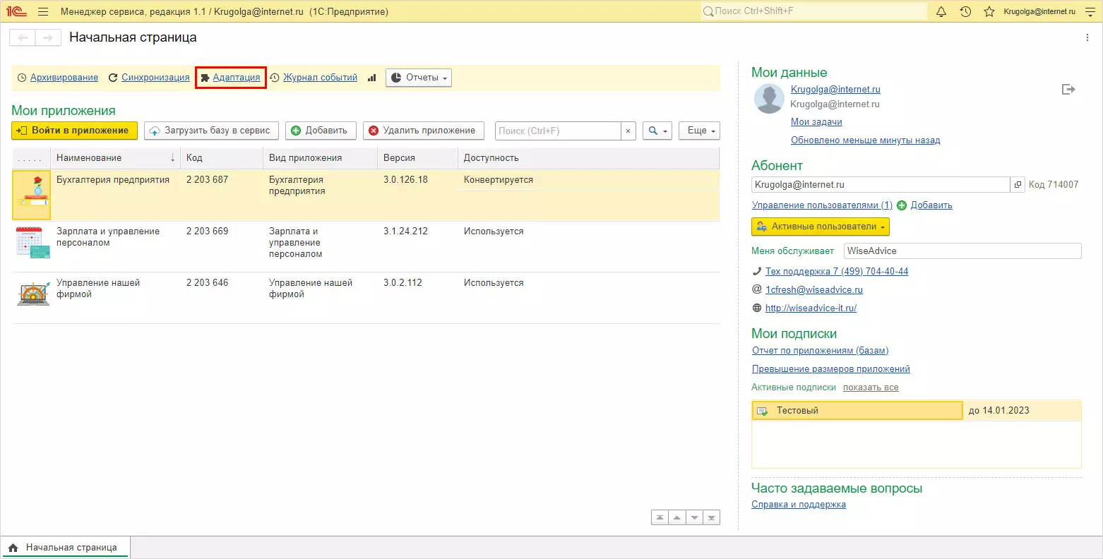 Личный кабинет и менеджер сервиса 1С Фреш