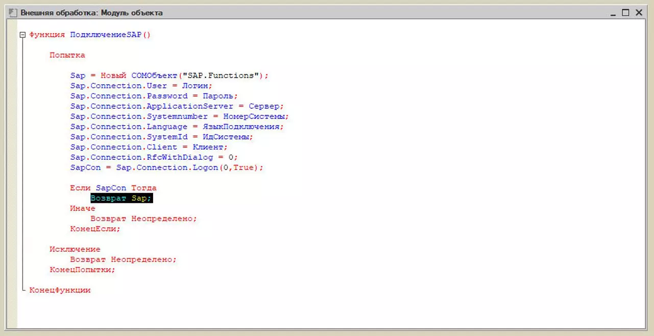 Решение достаточно простое, однако на практике придется столкнуться с тем, что при передаче данных необходимо будет выполнять преобразование их типов, и вы не сможете пользоваться привычными объектами SAP. То есть данные SAP будут передаваться в текстовом виде, и на стороне решения 1С вам необходимо будет преобразовать их в вид объектов.