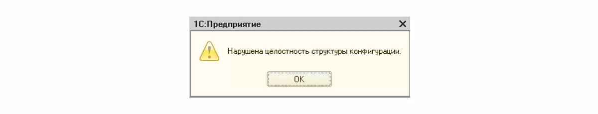 В работе программы 1С случаются сбои, и причин тому множество. Один из неприятных сюрпризов – сообщение программы «Нарушена целостность структуры конфигурации», ставящее рядового пользователя в тупик. Чаще всего данная ошибка становится следствием некорректного обновления – сбоя (выключения) системы, технических неполадок при выполнении обновления в конфигураторе или при выполнении автообновления программы в пользовательском режиме и т.п.