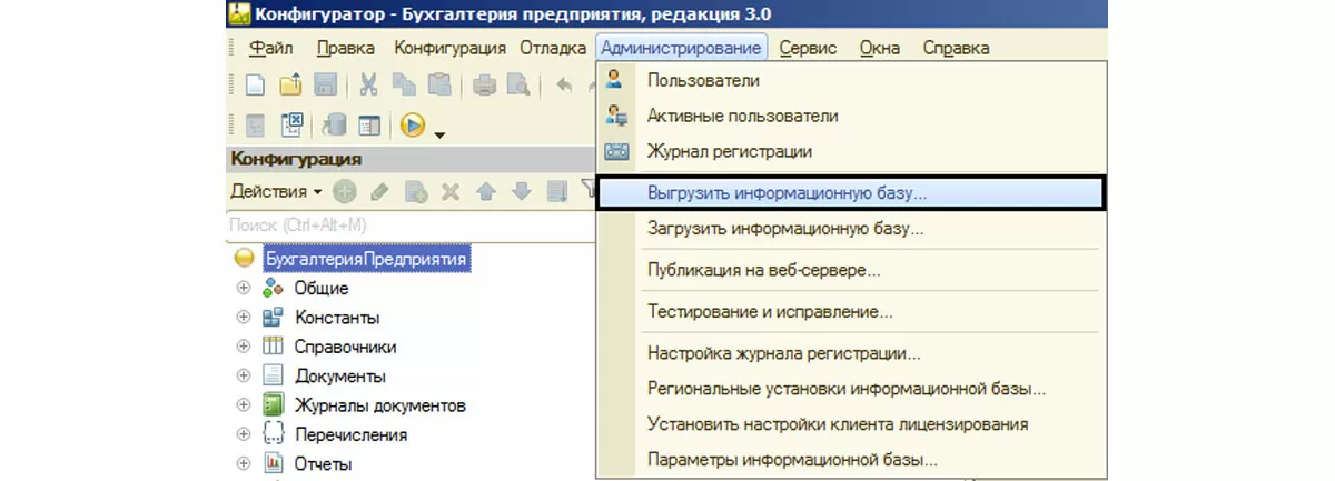 Перед попыткой исправить ситуацию, как и во всех случаях, предусматривающих манипуляции на уровне администратора, обязательно делаем резервную копию. Обратите внимание, что исправление ошибок требует определенных знаний, поэтому, если вы не уверены в своих силах, обращайтесь к нашим специалистам, они подскажут стоимость консультации по 1С и обязательно вам помогут.