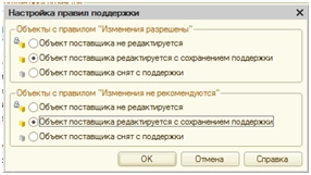 В следующем окне ставим две точки «Объект поставщика редактируется с сохранением поддержки».