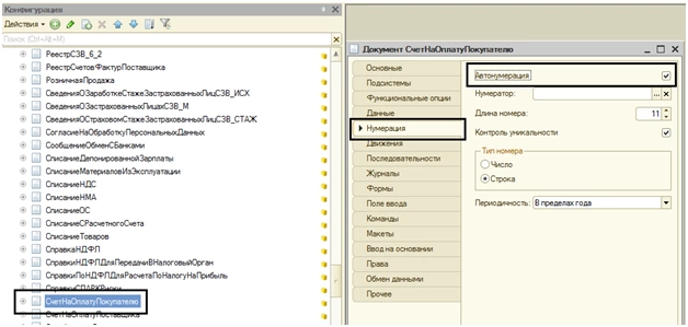Отключение «Автонумерации» документов в «Конфигураторе»