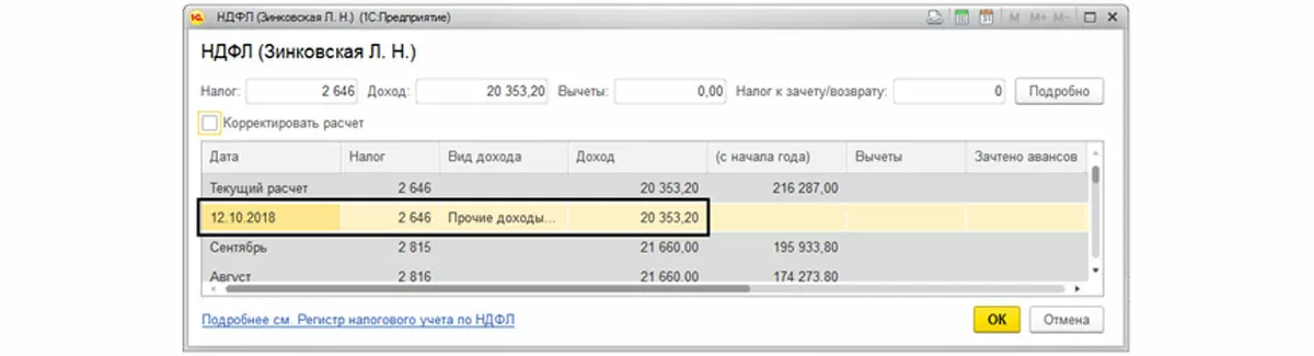 Нажав на гиперссылку «НДФЛ», можно посмотреть и, если надо, скорректировать сумму начисленного налога.
