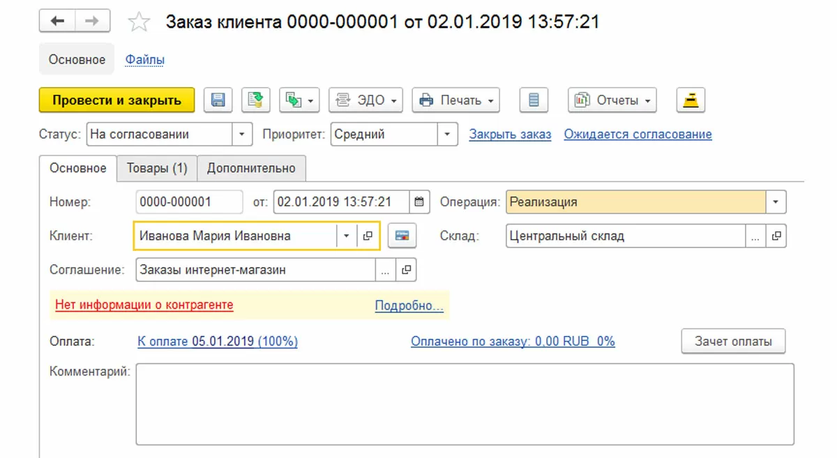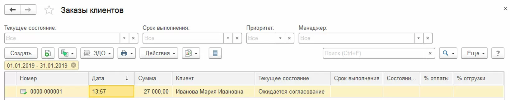 Открыв журнал «Заказы клиентов», мы видим наш сформированный заказ из интернет-магазина.