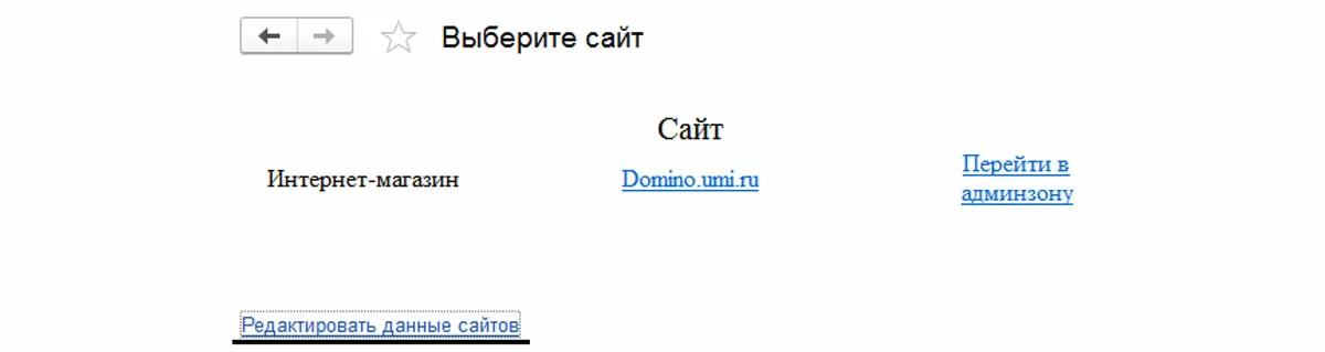 Из пункта меню «Продажи» - «Сайт компании» - «Перейти на сайт» мы можем в дальнейшем переходить на свой сайт, как в пользовательском интерфейсе, так и как администратор сайта для его настройки. Перейдя по гиперссылке «Редактировать данные сайтов», можно посмотреть настройку перехода на сайт, которая создана автоматически программой.