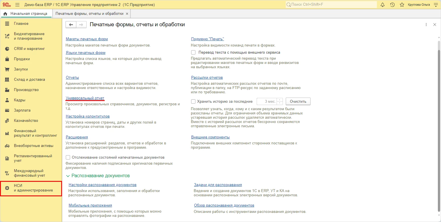 В 1С:ERP Управление предприятием – это раздел НСИ и администрирование.