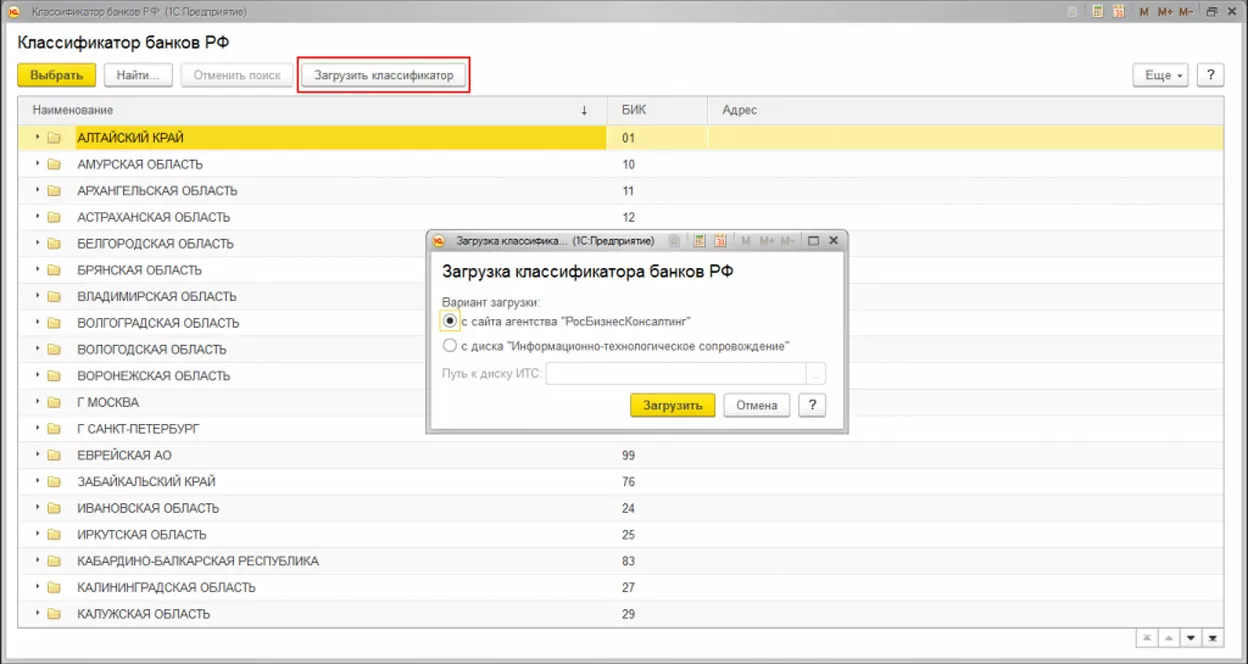 Автоматическая загрузка классификатора банков в 1С 8.3
