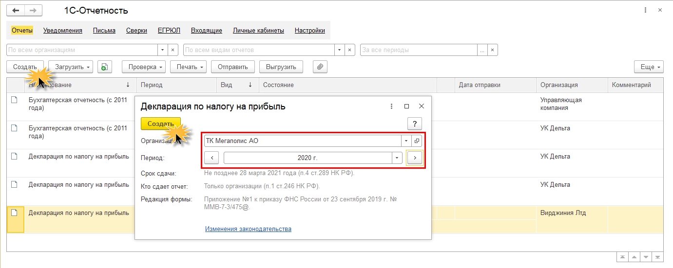 Бесплатный аудит и рекомендации по учету чистой прибыли на базе 1СПерейдем в раздел «Регламентированная отчетность» и создадим вышеуказанный отчет – кнопка «Создать».