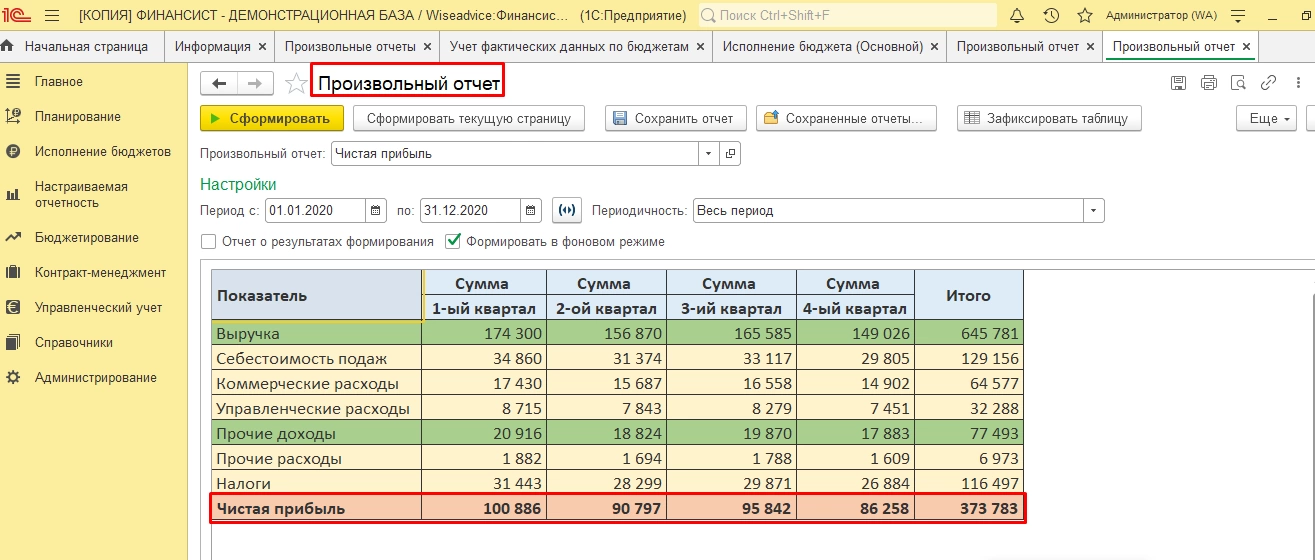 Построение учета чистой прибыли в WA:Финансист для эффективных управленческих решений