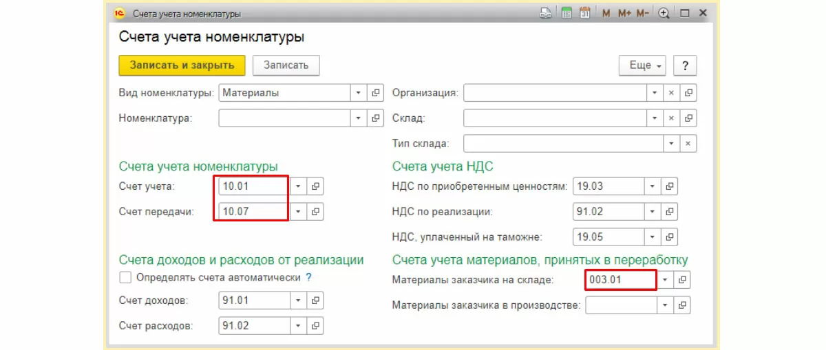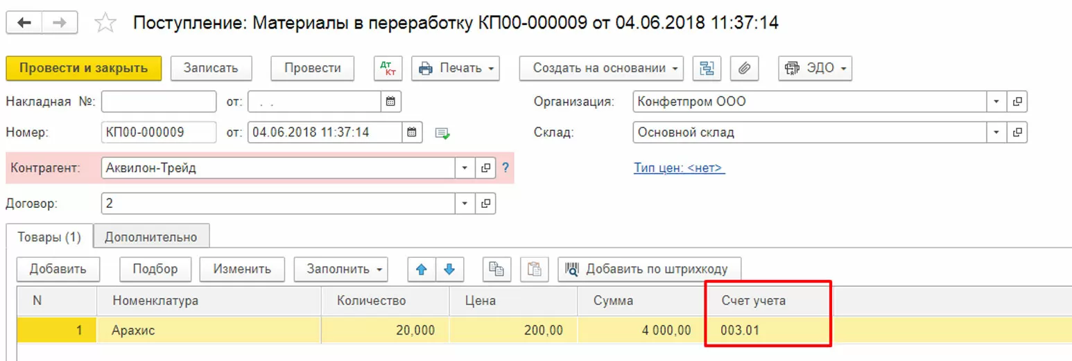 Отметим, что вне зависимости от источника поступления, материал всегда приходуется с указанием склада и счета учета. Приходовать можно как на балансовые, так и забалансовые счета.