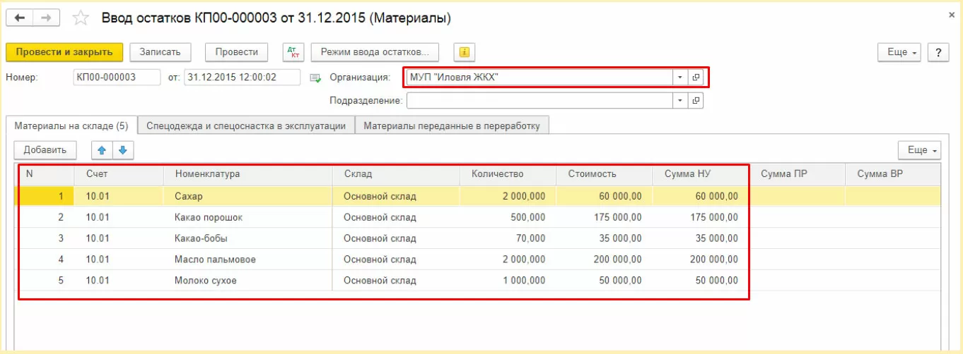 Этим приходуются материалы на выбранный в шапке склад и формируются движения по бухгалтерскому и налоговому учету, а также по спецрегистрам.