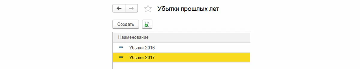 Обычно справочник прошлых убытков заполняется автоматически: в рамках закрытия года, перед реформацией баланса, система проверяет, существует ли в этом справочнике запись с годом, соответствующим закрываемому, и если нет – автоматически добавляет новый элемент для текущего года.
