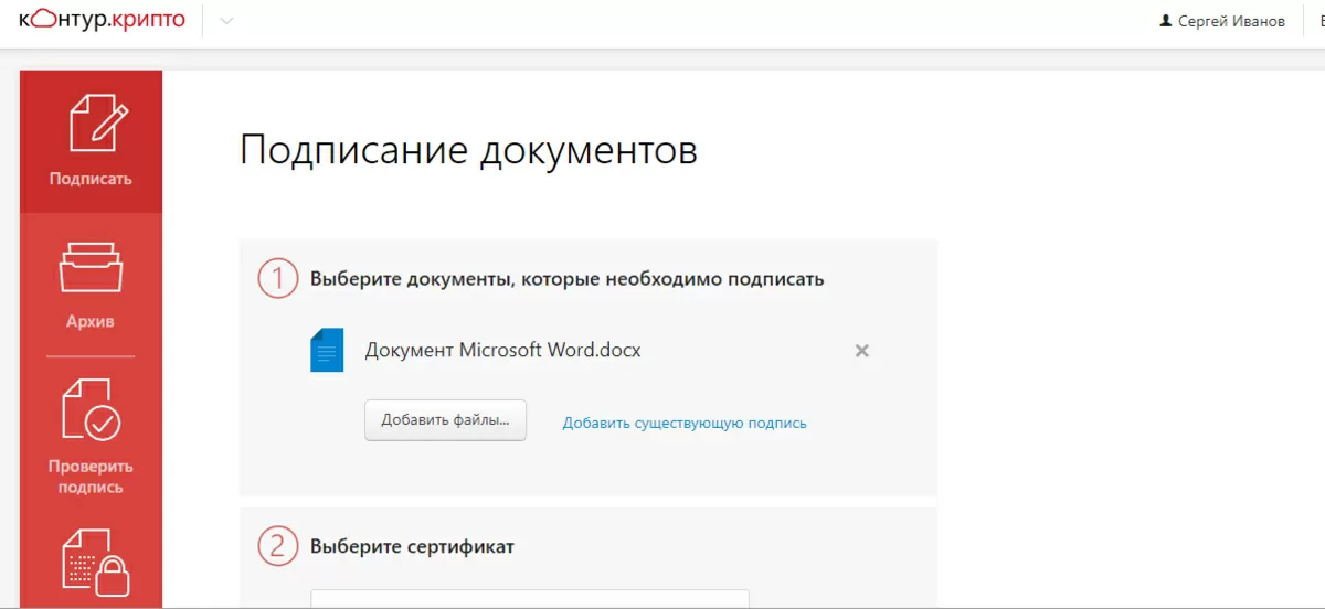 Если не хотите устанавливать на ПК дополнительное программное обеспечение, например, при работе за офисным компьютером, доступ к которому может быть у нескольких лиц, рекомендуется использовать онлайн сервис Контур.Крипто. Бесплатная версия доступна после регистрации. Интерфейс простой, понятный, выглядит следующим образом: