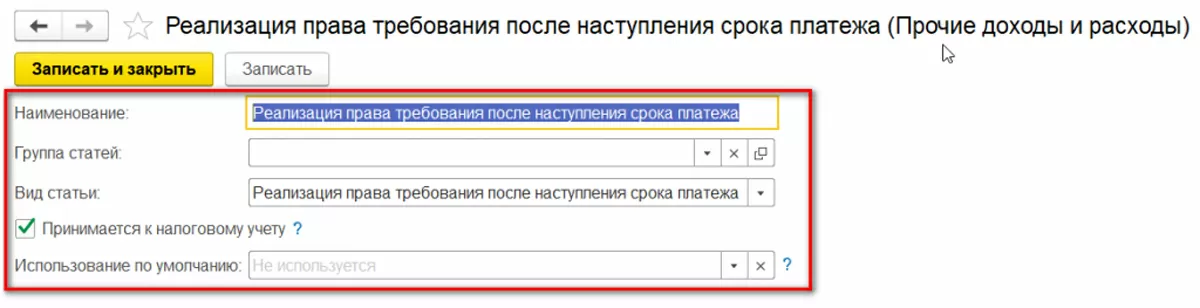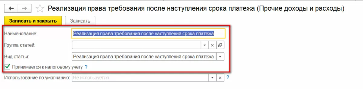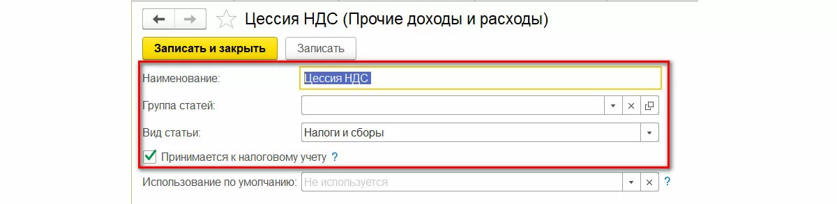 По виду доходов создаем новую позицию с видом статьи, как на рисунке, и отметкой о принятии к НУ.