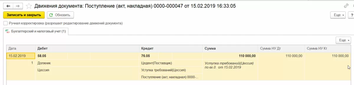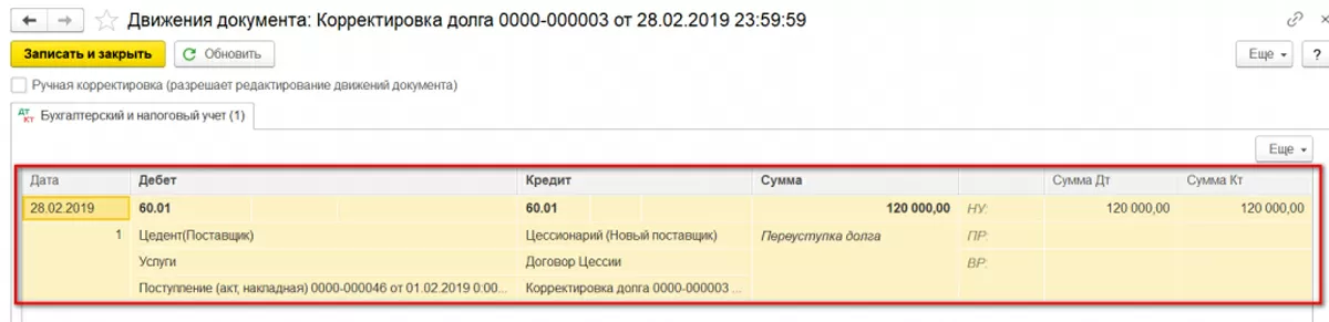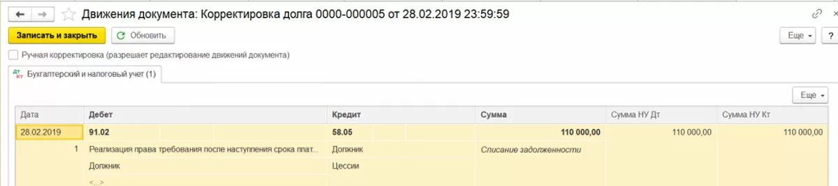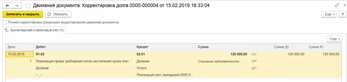 Обратите внимание, теперь документ имеет отметку о ручной корректировке проводок и/или регистров.
