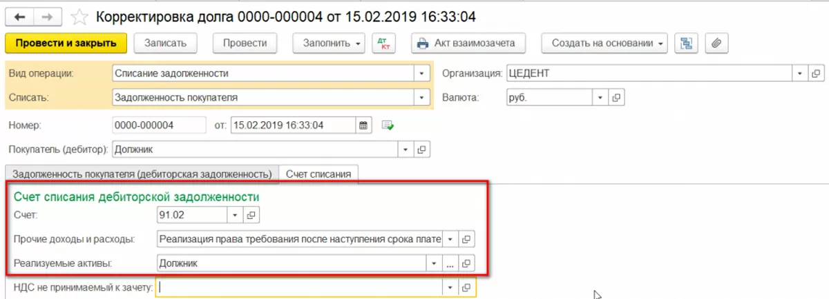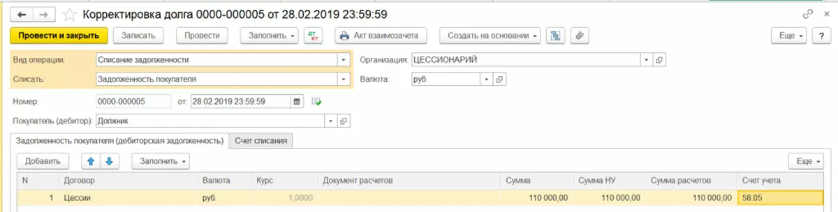 Исходя из этого, попробуем отразить в 1С договор цессии с использованием стандартных документов, что проще всего в этой ситуации сделать, показав операции у организации-должника. С этого и начнем.
