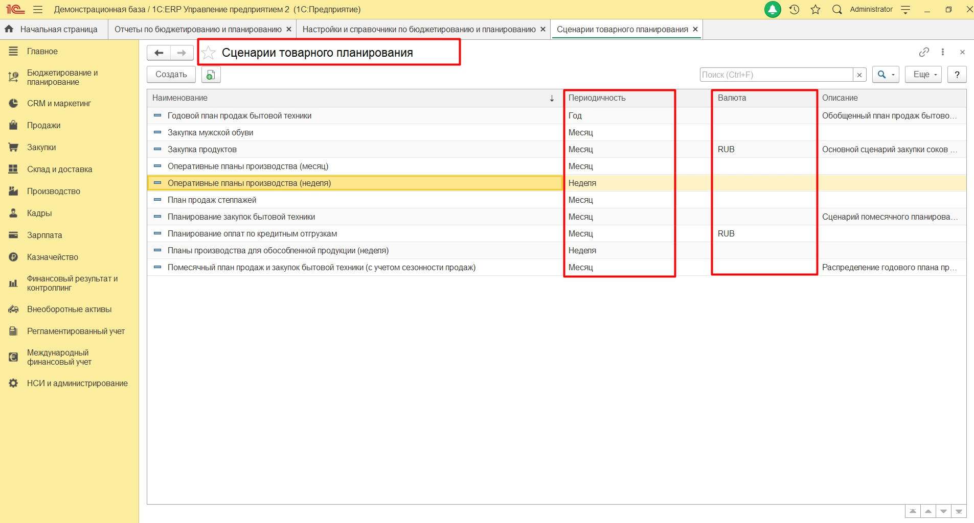 Справочников «Сценарии товарного планирование» может быть несколько с разной периодичностью и валютами.