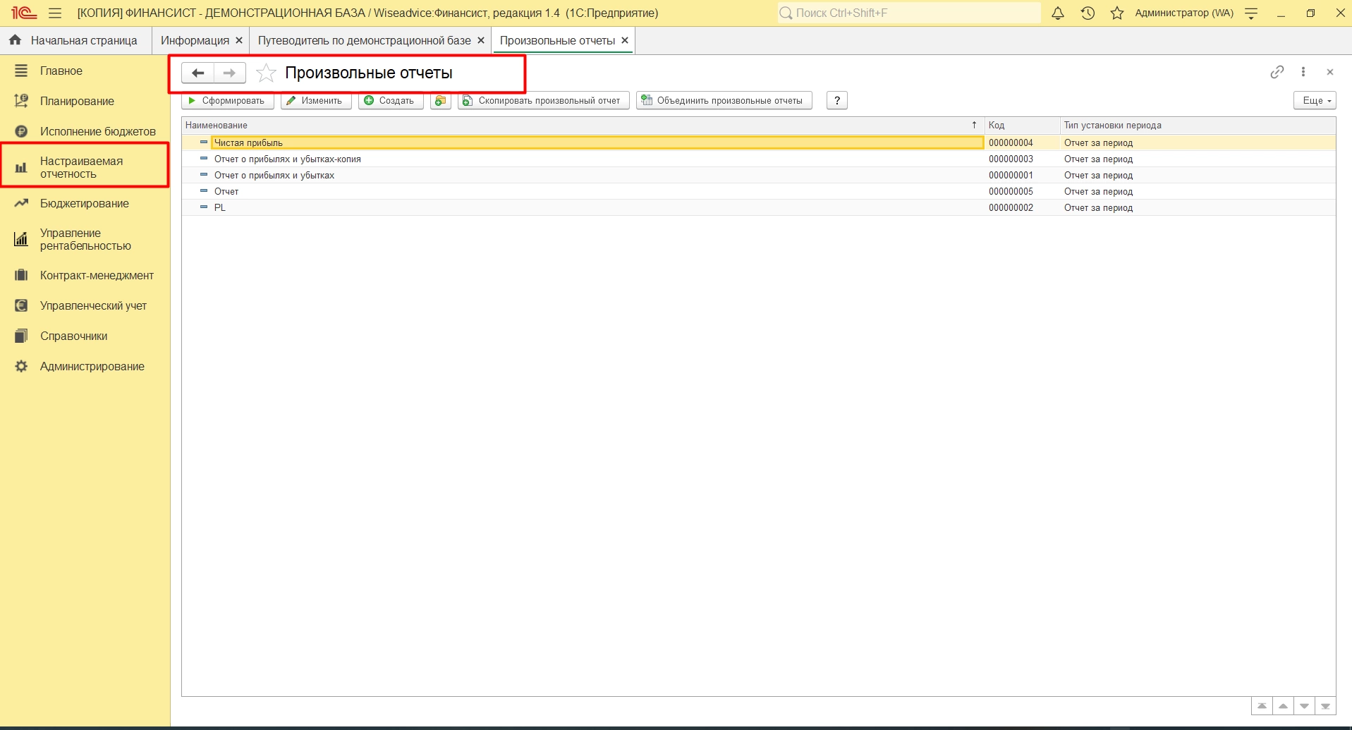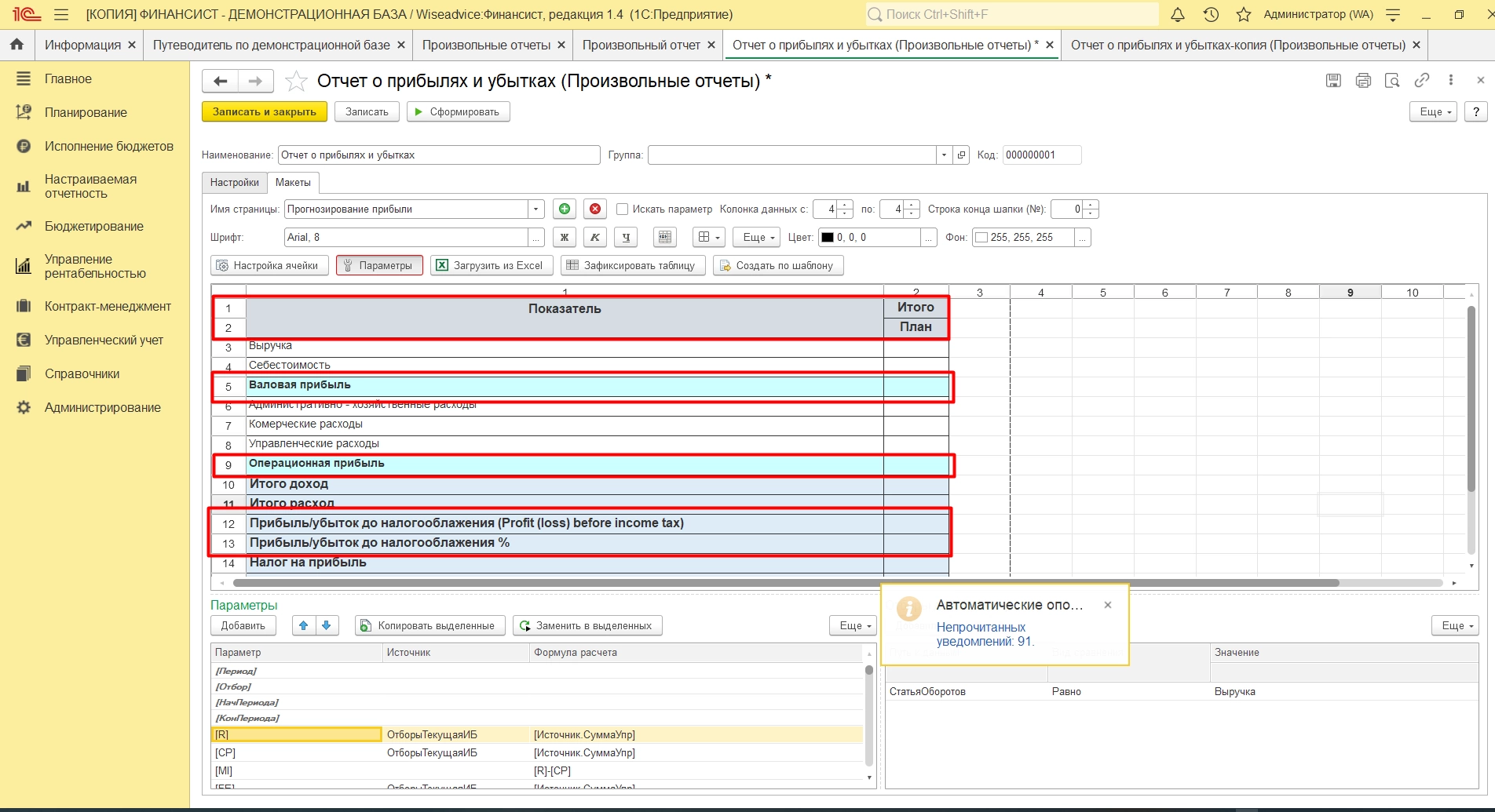Прогнозирование прибыли в программе WA:Финансист – специализированной разработке нашей компании на платформе «1С:Предприятие» и полностью совместимой с другими тиражными продуктами фирмы, можно реализовать после внесения данных и утверждения планов в системе. Прогнозирование прибыли в данном программном продукте можно проводить при помощи блока «Настраиваемая отчетность».