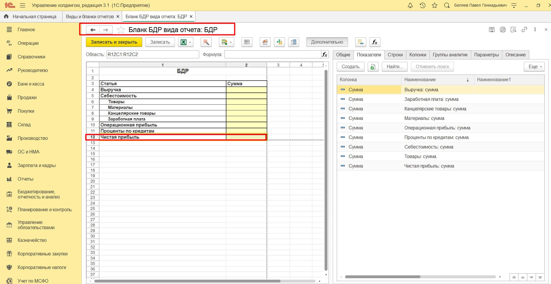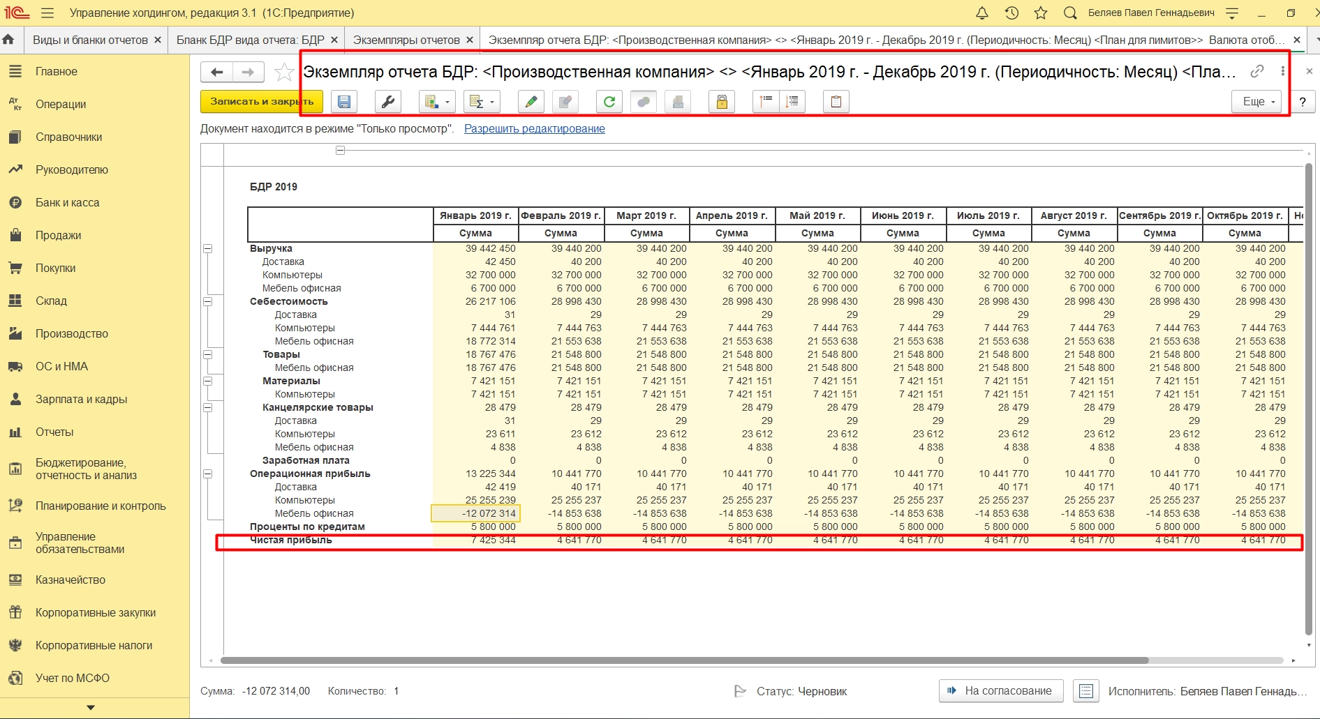 На основании данных из этих справочников можно будет выводить прогнозируемую прибыль по различным организациям, входящим в холдинг. Периодичность прогнозирования будет завесить от периодов, настроенных в сценариях планирования.