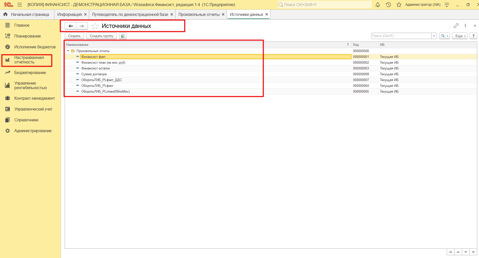 Для работы с данным блоком необходимо настроить справочник «Источники данных». Настройка данного справочника индивидуальна для каждой организации.