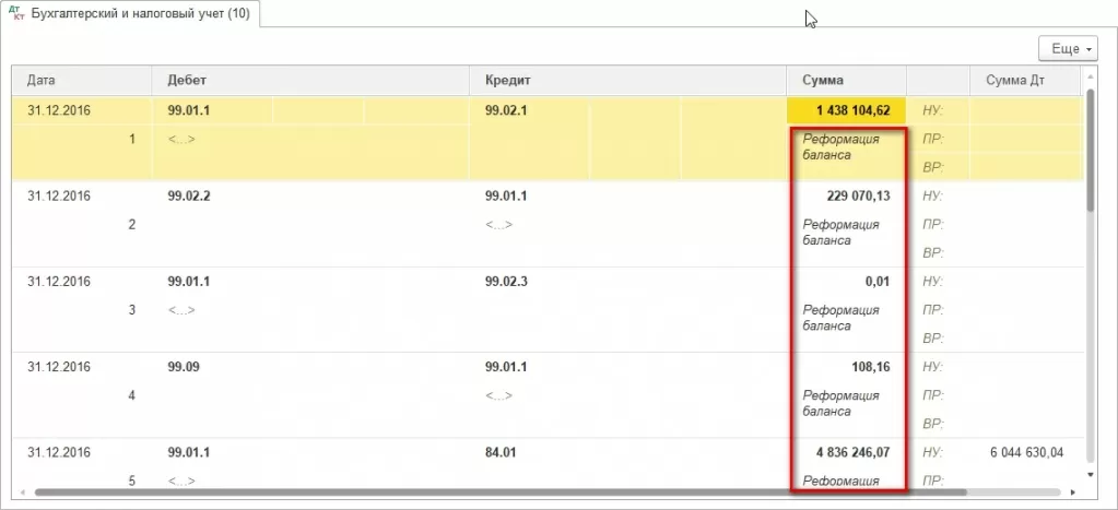 Логика проводок полностью соответствует принципу реформации, описанному в начале статьи.