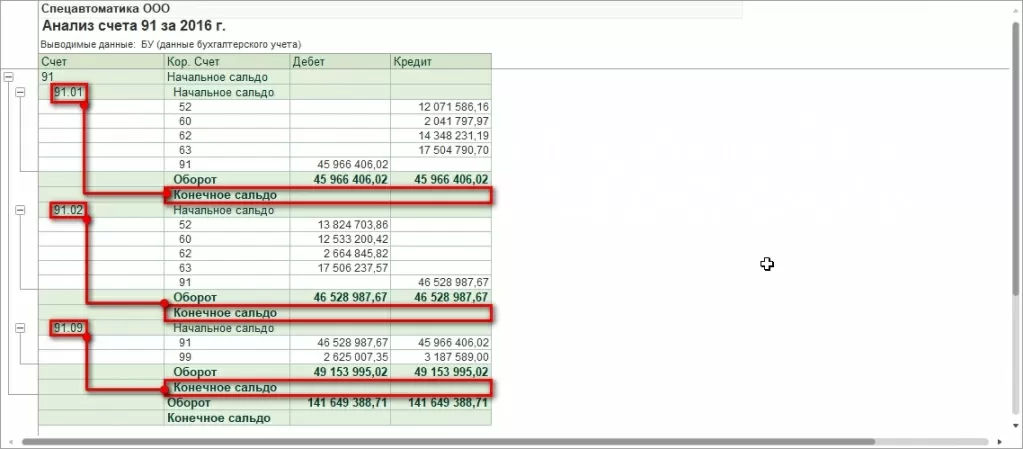 Конечное сальдо равно нулю для каждого субсчета счетов 90 и 91. Первый этап реформации выполнен правильно.