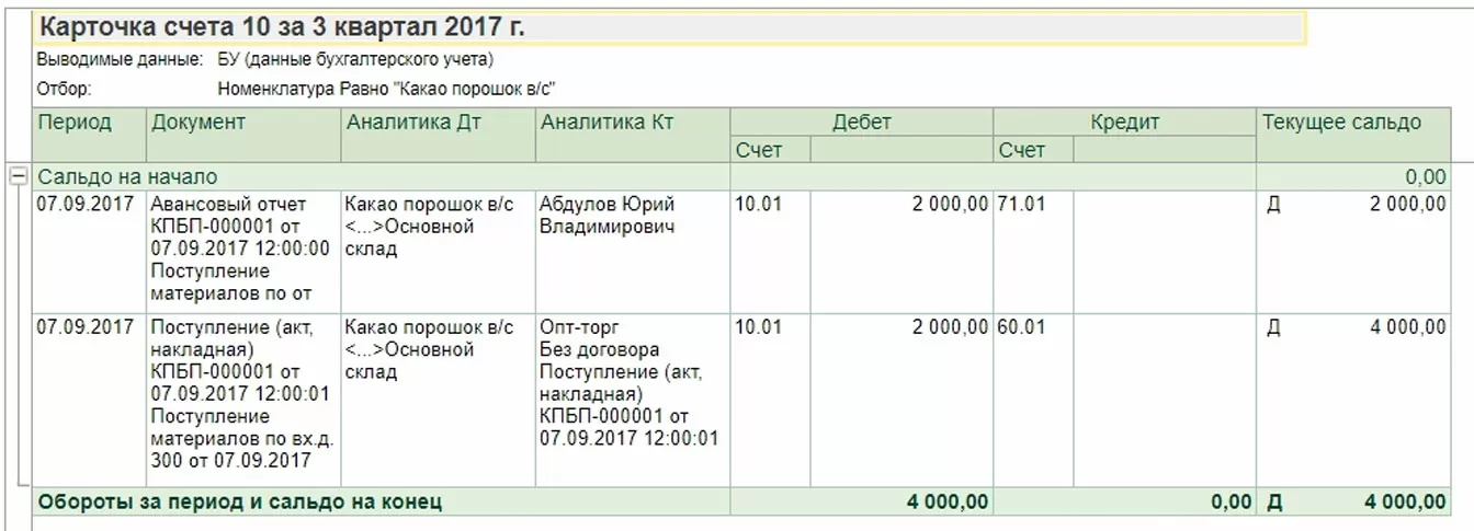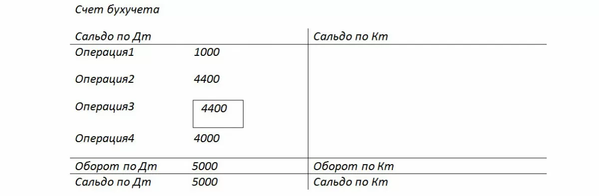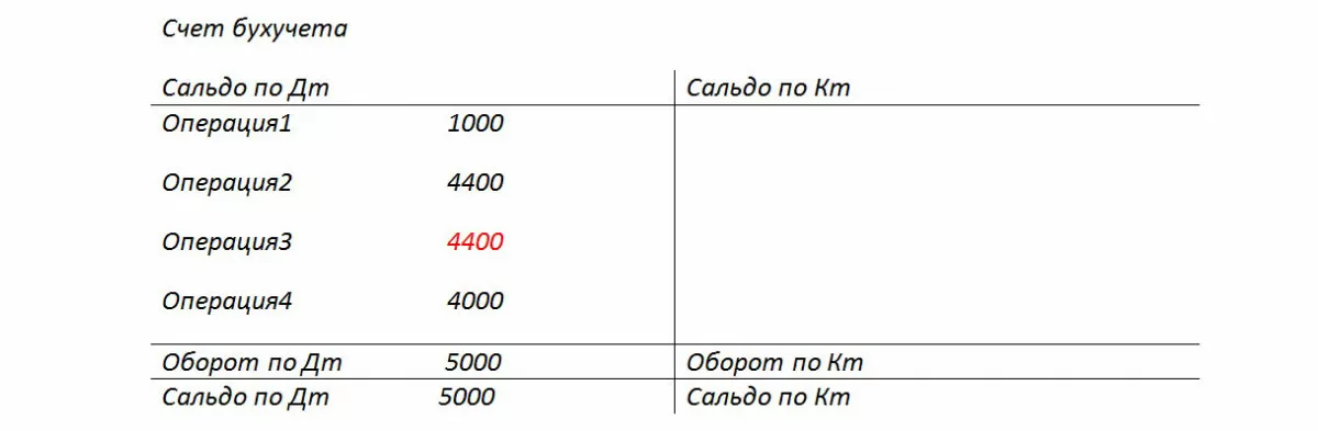 Пример 1: Обороты по бухгалтерскому счету, сумма 1000 правильная, вместо суммы 4000 указали 4400 (Операция 2).