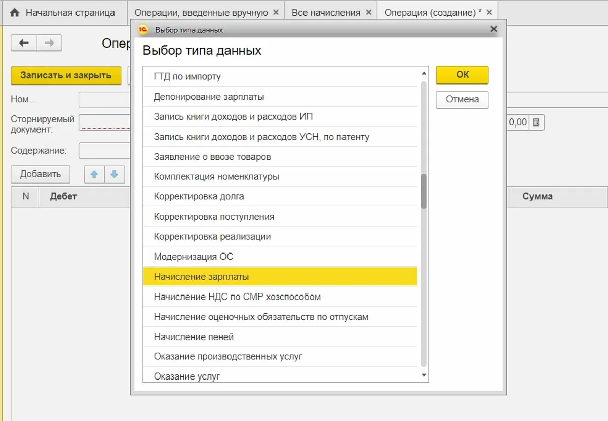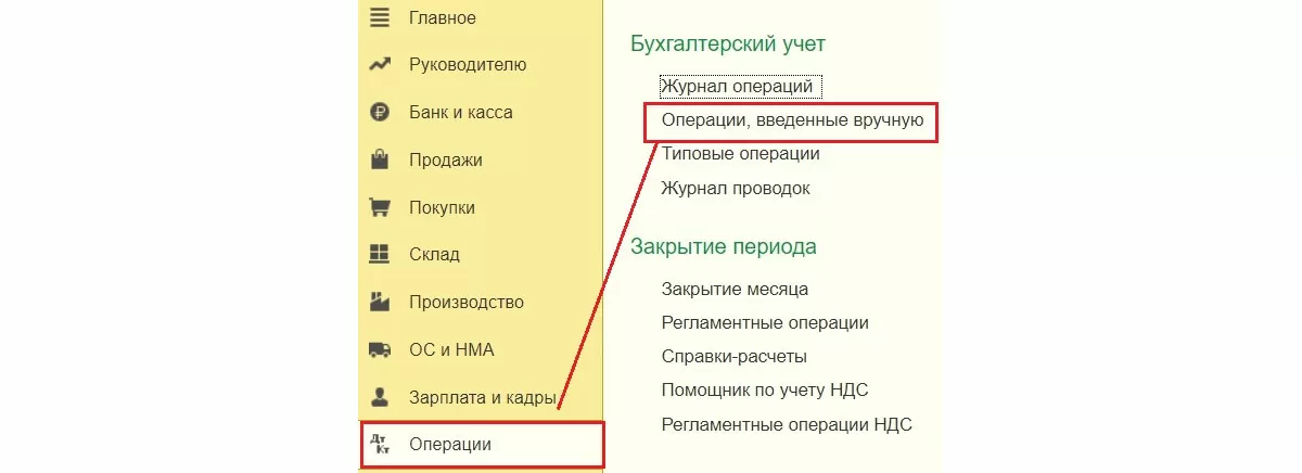 Операции => Операции, введенные вручную