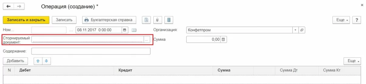 Создание документов сторно в 1С 8.3