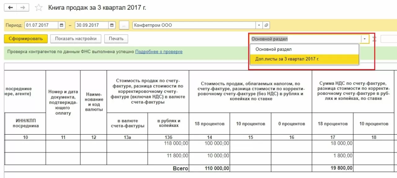Далее стандартно формируем книгу покупок с доп.листами и уточненную декларацию.