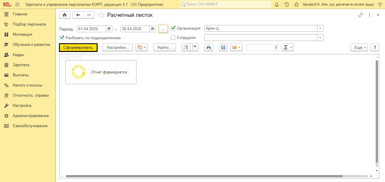 Формирование расчетного листка в разделе «Отчеты по зарплате»