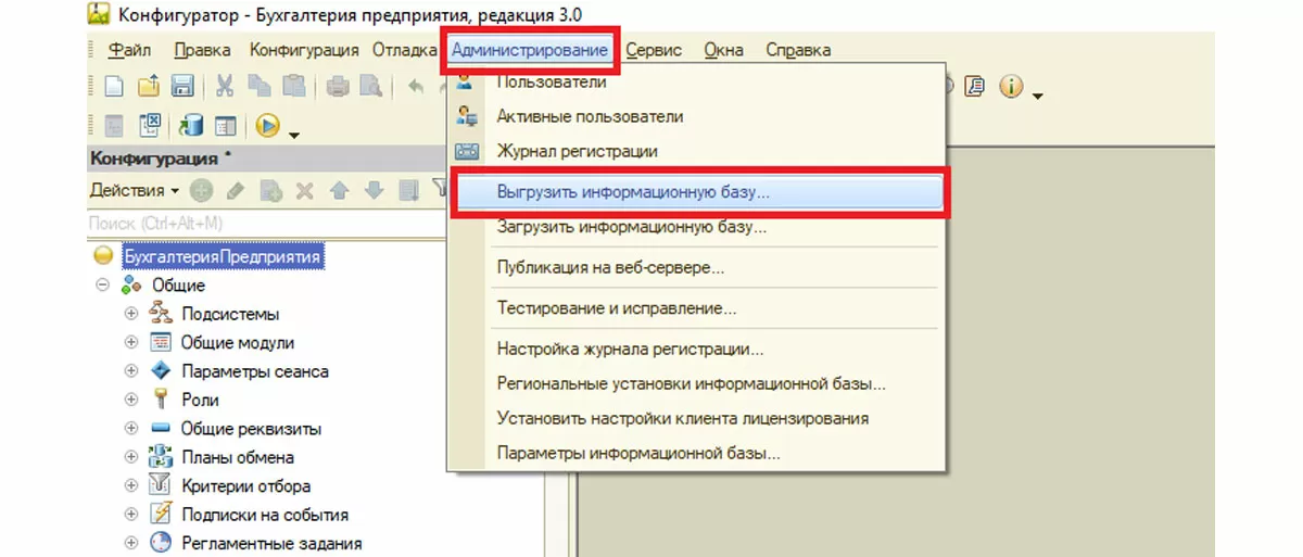 Если же такая процедура все-таки необходима – рекомендуем сначала скопировать свою ИБ (информационную базу) для возможности восстановления.