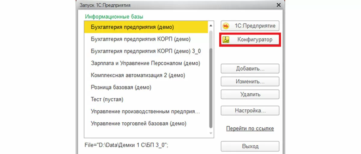 Для чего мы это делаем? В базе 1С сохранены три конфигурации: