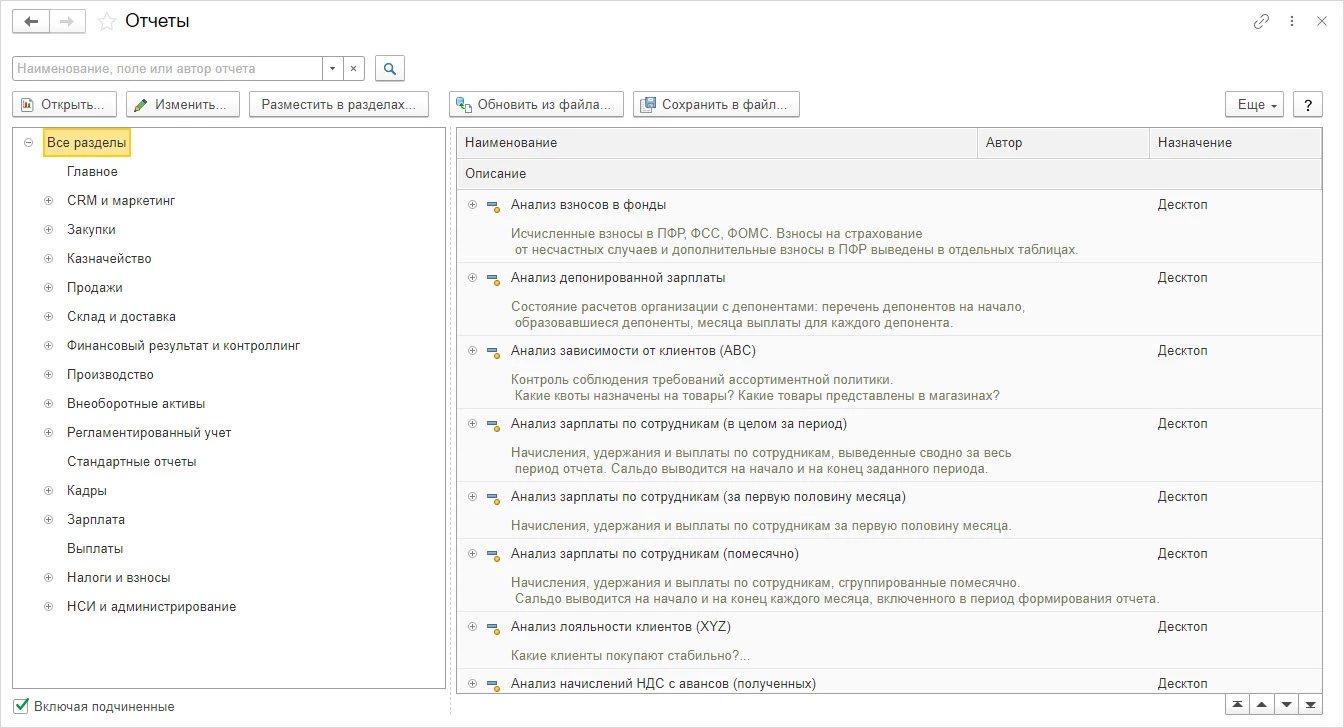 Базовая настройка 1С, форм отчетов/документов, обменов данными, расширений, торг. оборудования и пр.Как добавить отчеты в раздел на рабочий стол