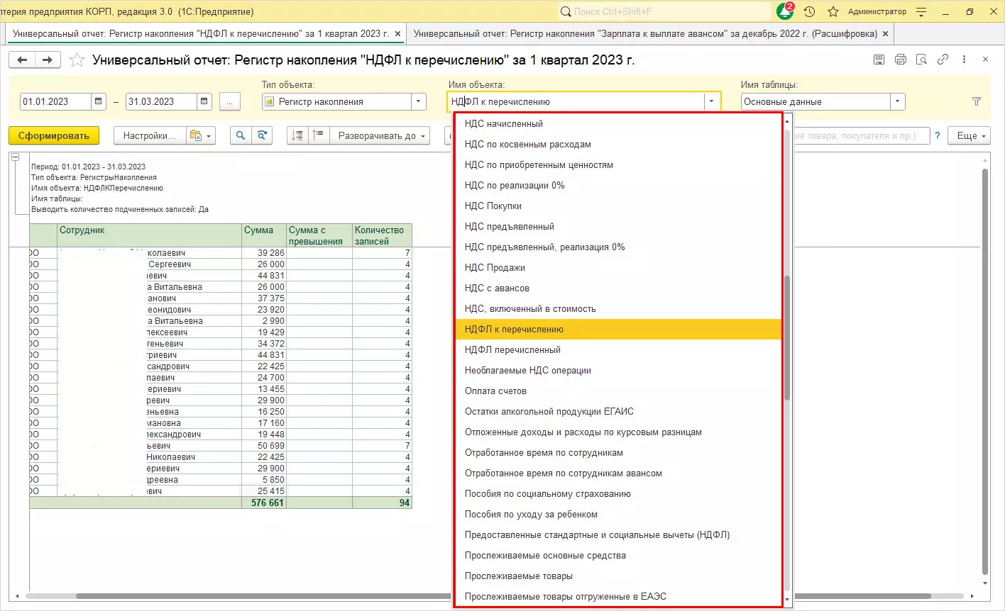 На основе записей в регистры формируются не только отчеты, но и некоторые документы. Например, выплата зарплаты или аванса.