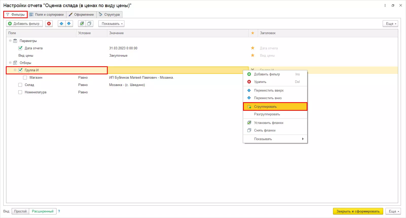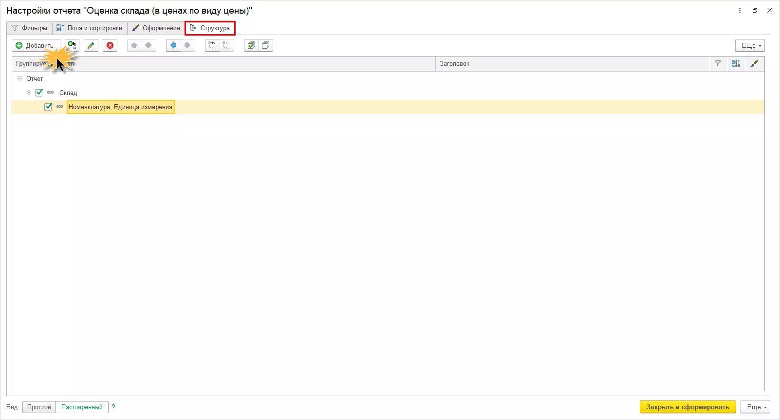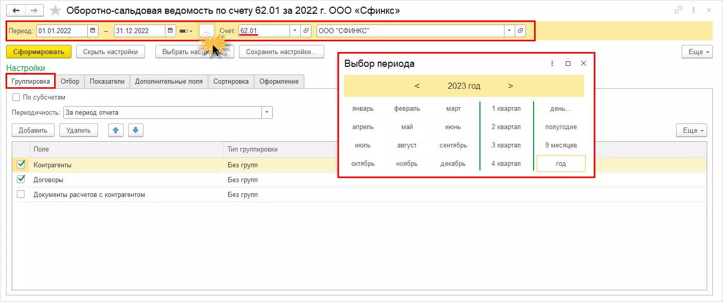Доработка 1С без вмешательства в конфигурацию. Обеспечим оптимальную стоимость владения 1СШаг 3. Установите группировку.