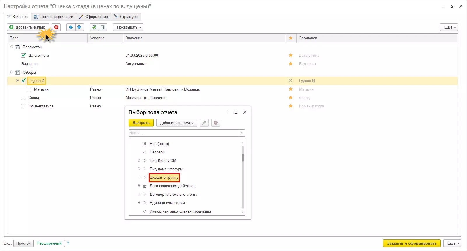 Используя кнопку Добавить фильтр устанавливаются дополнительные поля для отбора.