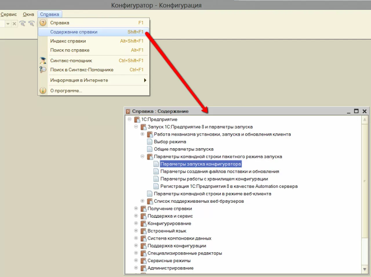 Все параметры запуска «1С:Предприятие» приведены во встроенной справке системы: