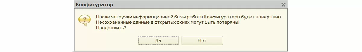 После нажатия на кнопку «Да», начнется процесс восстановления данных. Процесс необратим! При начале загрузки данных, существующие данные будут утрачены и заменены данными из загружаемого файла базы при восстановлении.