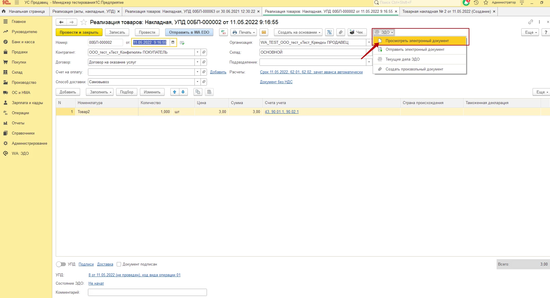 - Перейти в Еще → ЭДО → Посмотреть ЭД.