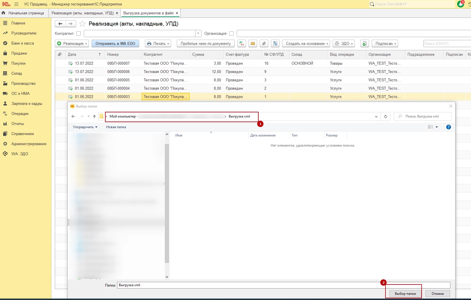 После всех действий 1С запросит выбрать папку для сохранения файла документа.