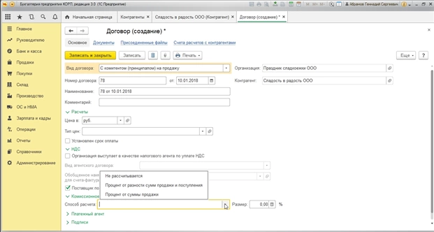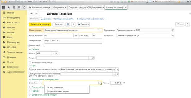 Любые дела с контрагентом официально начинаются с заключения договора. В дальнейшем предполагается выполнение договора с учетом особенностей его заключения. В конфигурации 1С:Бухгалтерии можно регистрировать два вида договоров с комитентами – на продажу и на закупку.