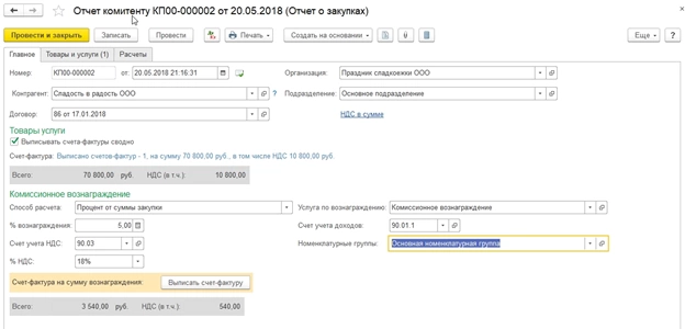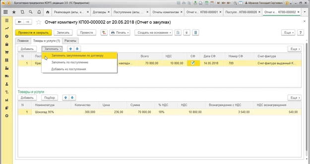 Таким образом, мы рассмотрели все возможные особенности отражения «Отчета комитенту» в конфигурации «1С:Бухгалтерия предприятия 8.3».