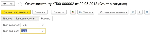 В «Расчетах» показаны счета расчетов с покупателями и комитентом, а также метод расчета – удержание из выручки, либо непосредственное получение от комитента.