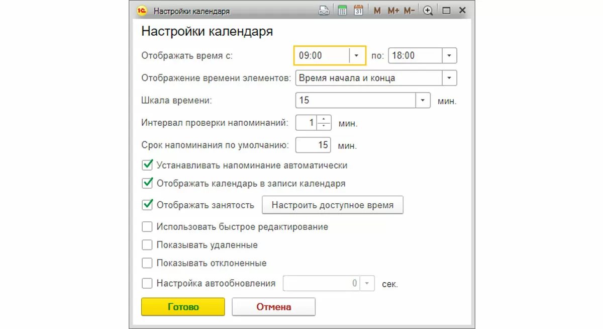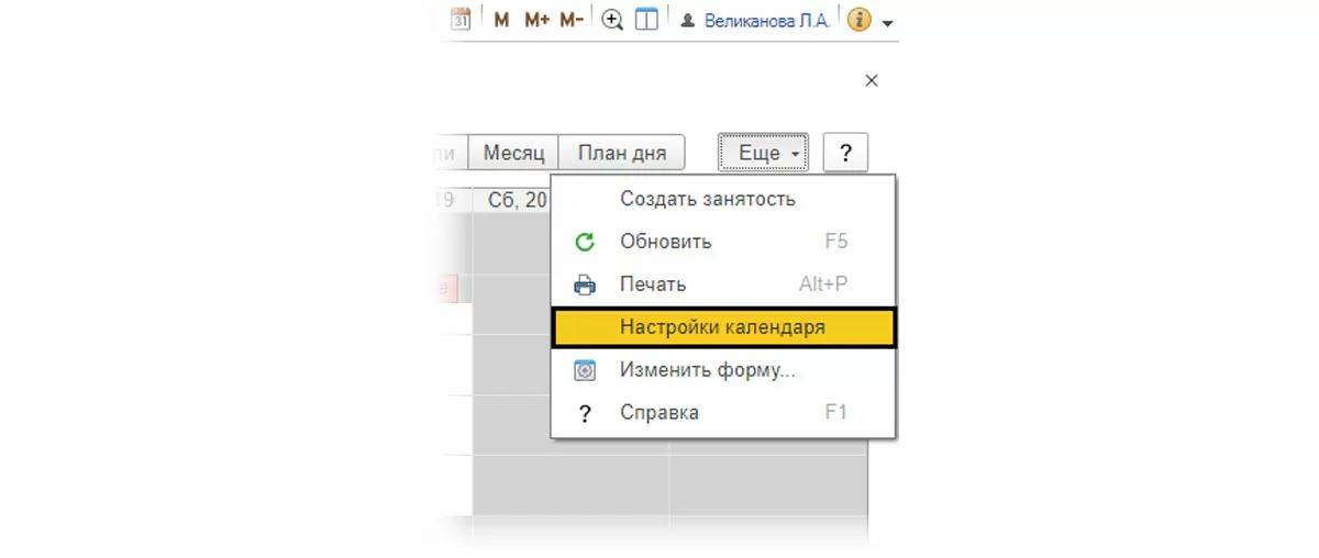 Нажав кнопку «Еще» и выбрав команду «Настройки календаря», можно выполнить некоторые его настройки.