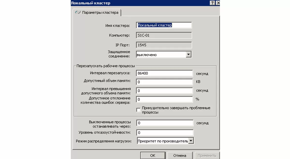 Необходимо отнестись с полной ответственностью ко всем действиям. Параметры кластера могут серьезно повлиять на поддержку производительности 1С и возможность работы, как в лучшую сторону, так и в противоположную. Каждый параметр оказывает влияние на все сервера, входящие в кластер. Поэтому перед тем, как изменять что-либо, необходимо понять, за что отвечает настройка кластера 1С.